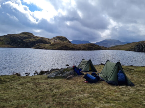 Setting up camp on the banks of the tarn – with a flock of geese for neighbours – it was a chance to find some space and peace after a packed few days. Some team members took the opportunity to nap or just take in their surroundings, whilst some of the girls joined instructor Andy to tick off the Angletarn Pikes peak just as the sun began to set.