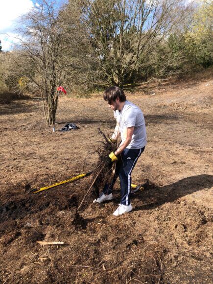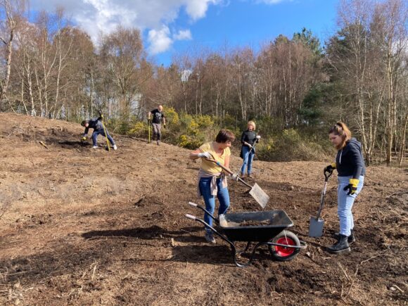 The first event at Telford’s Manor Road Pitmound on 27th March, saw Sigma Capital team members team up with the Buglife team, as part of GreenTheUK’s B-Lines Insect Pathways Project, to clear part of the heathland for reseeding of heathers and other native wildflowers, supporting the movement, and presence, of many small creatures such as the increasingly rare Dingy Skipper butterfly.